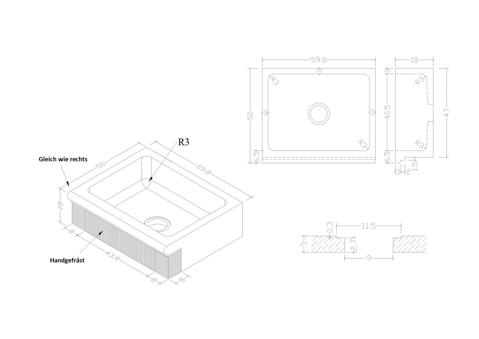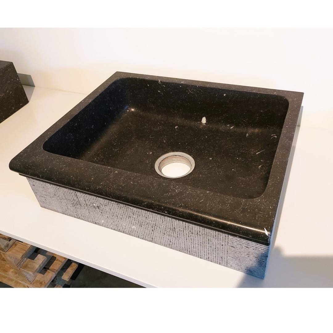 Mit einem zeitlosen Design aus dem 19. Jahrhundert und einem massiven Stück belgischen Blausteins, das von Hand bearbeitet wird, strahlt dieses einzigartige Spülbecken eine Klasse aus, die eine schöne Küche in eine einzigartige Küche verwandeln kann. Durch echte Handwerkskunst entsteht in den Werkstätten des belgischen Steinmetzes jedes Mal ein einzigartiges Produkt, das der Ewigkeit trotzen kann. Belgischer Blaustein ist pflegeleicht, zeitlos und nahezu unverwüstlich.